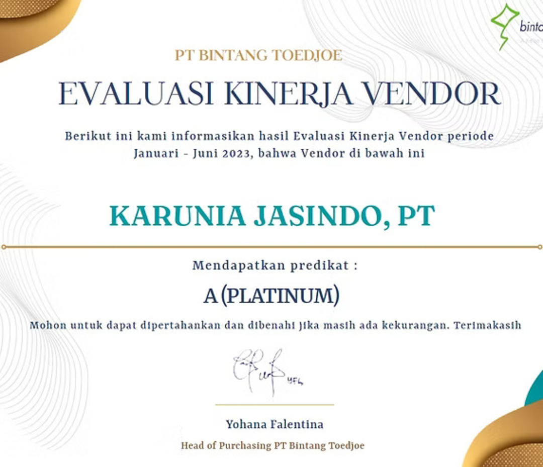 PT. Bintang Toedjoe is a trusted Indonesian company offering safe and effective herbal medicines since 1951, awarded PT. Karunia Jasindo the highest ranking vendor performance